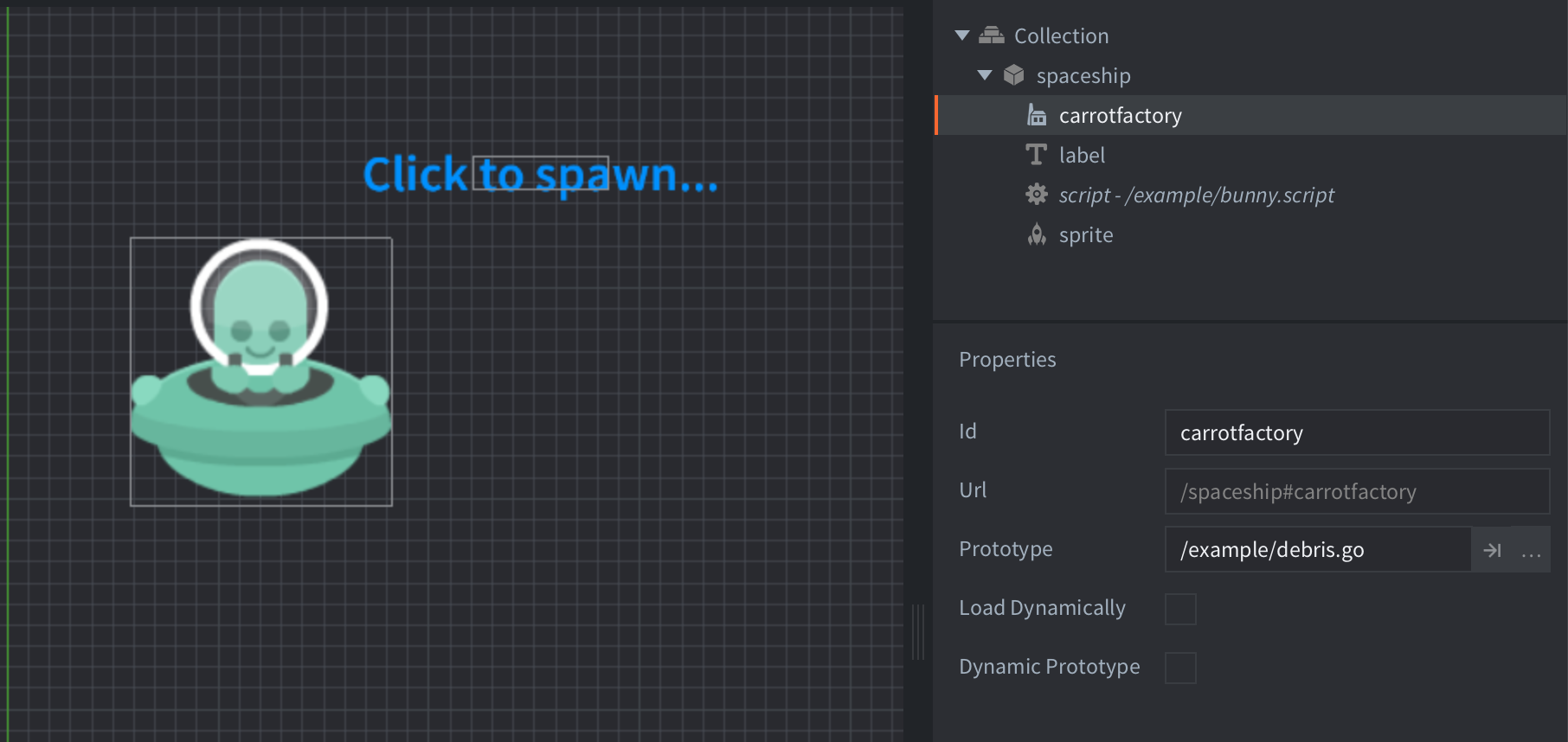 tags: factory title: Spawn game object brief: This example shows how to dynamically spawn game objects with a factory component. author: Defold Foundation